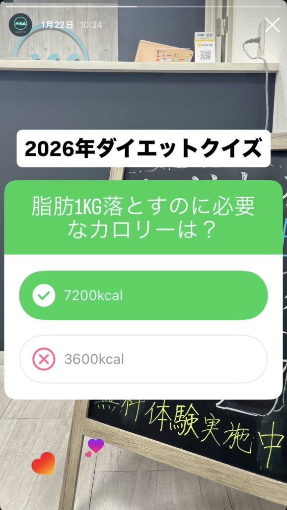 CALOREのインスタでダイエットクイズをやっているので、ぜひやってみてください↓